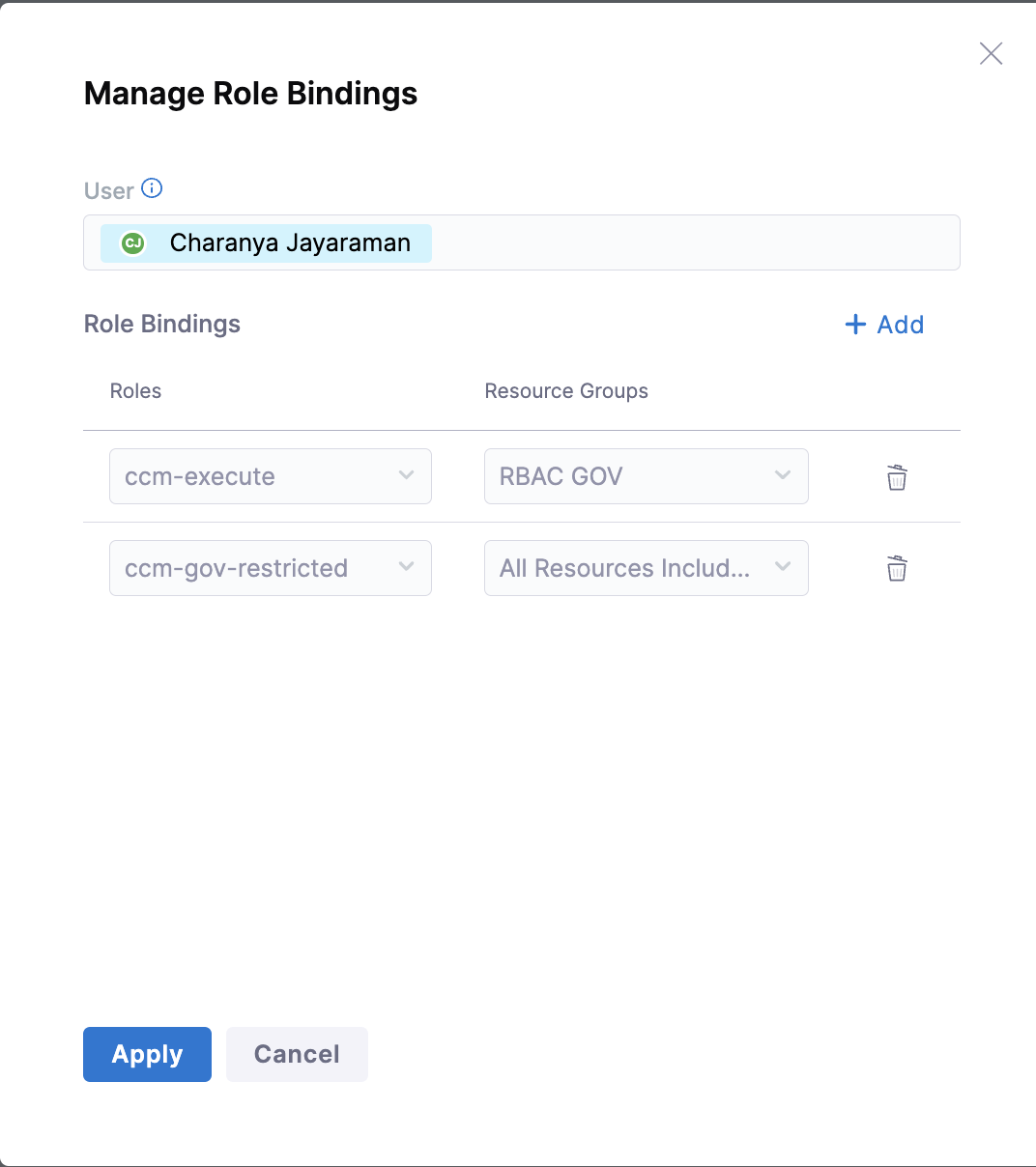 - Add another role binding. Select the role without permission to execute rules, and then select