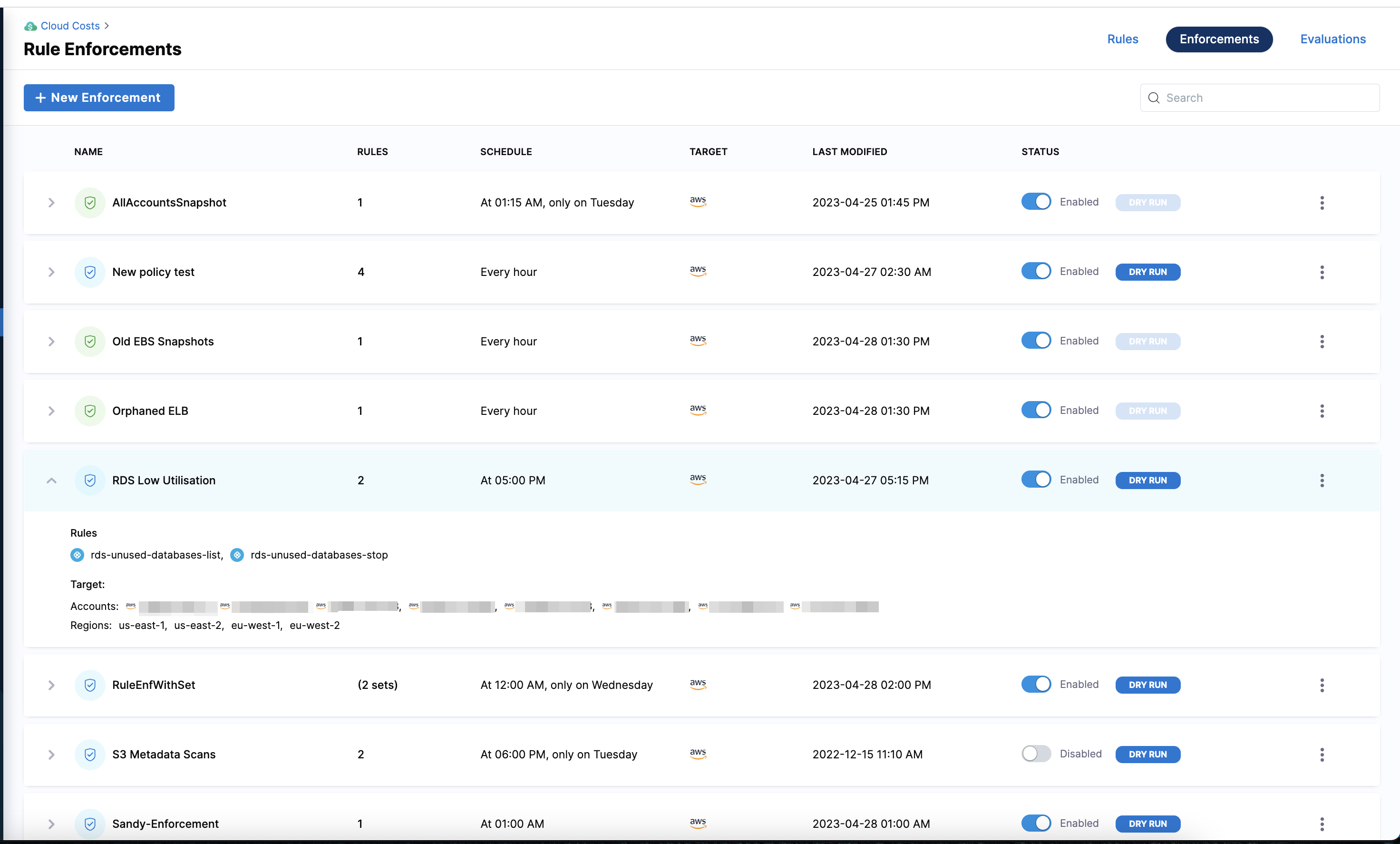 When editing an enforcement, you must have the necessary permissions for all the rules and target accounts that you want to include in the enforcement.