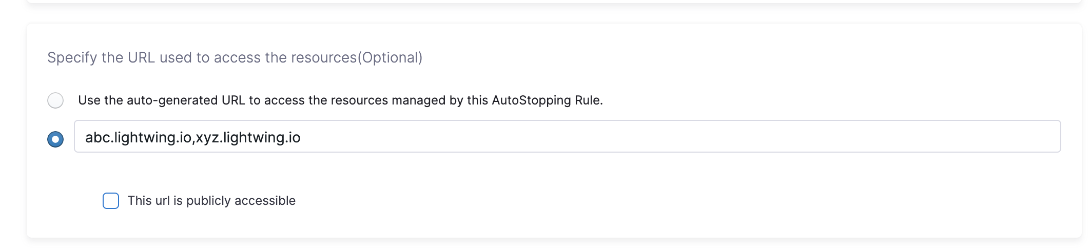 Select Use the auto-generated URL to access the resources managed by this AutoStopping Rule.