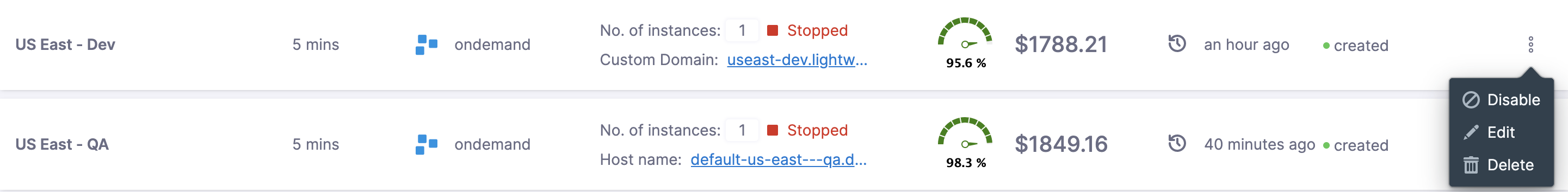 In AutoStopping Rules, in Summary of Rules, click on the Custom Domain or Hostname of the selected instance.