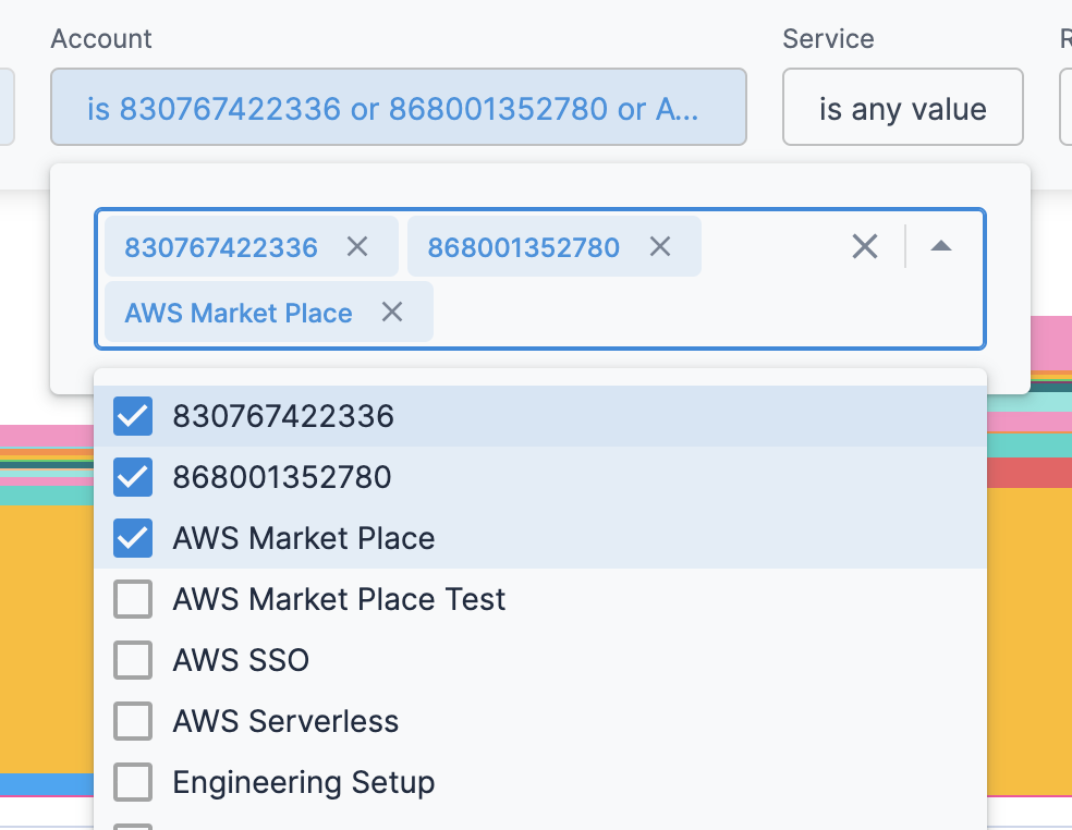 In Account, select the account for which you want to view the cost. You can select multiple accounts.