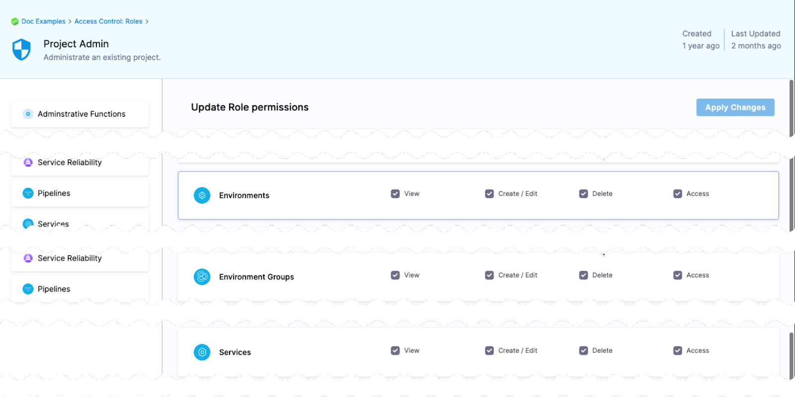 The View, Create, Edit, Delete, and Manage permissions enable you to deploy a service and environment.