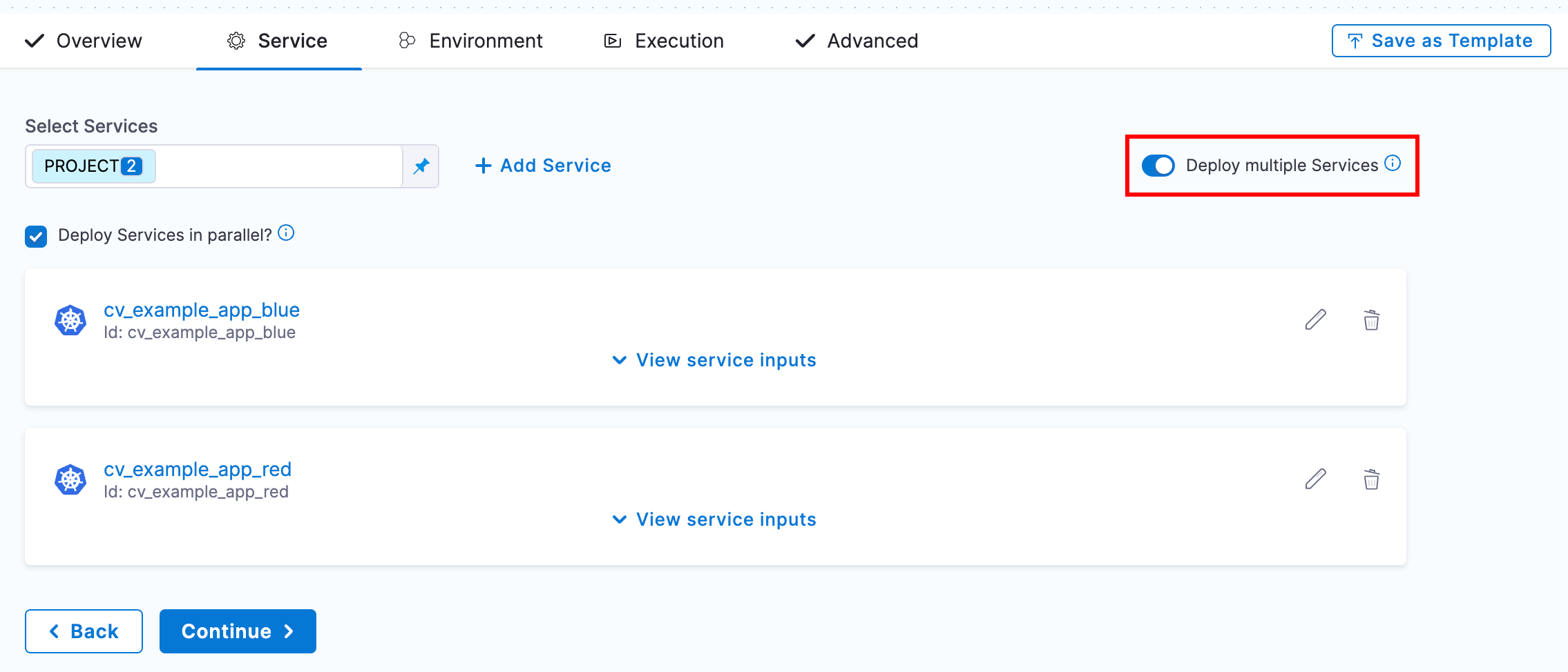 Start by creating a multi-service CD stage and either select the services to deploy or set a runtime input.