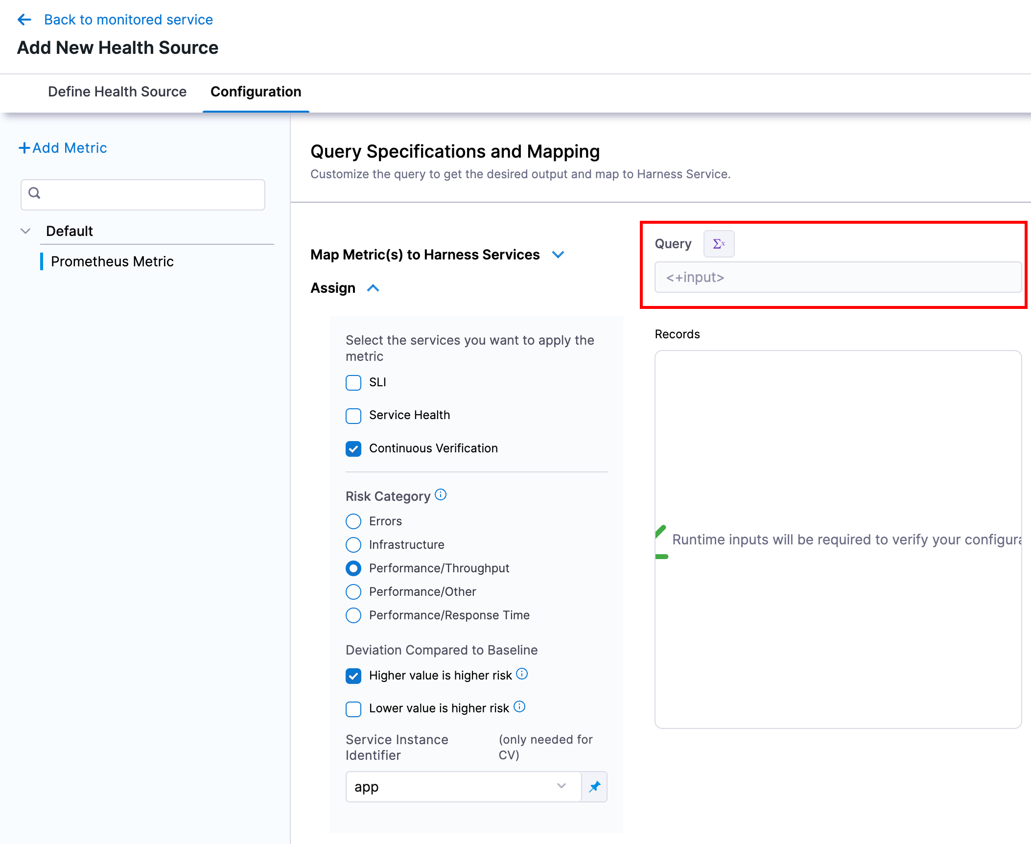 The important part here and how we get CV to work for multi-service deploys is that we can use Harness expressions in our query. Things like <+service.name>