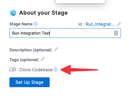 In the Infrastructure tab, select Propagate from an existing stage, and select the first Build stage in your pipeline. This configures the pipeline to use the same Kubernetes cluster and namespace for both stages.