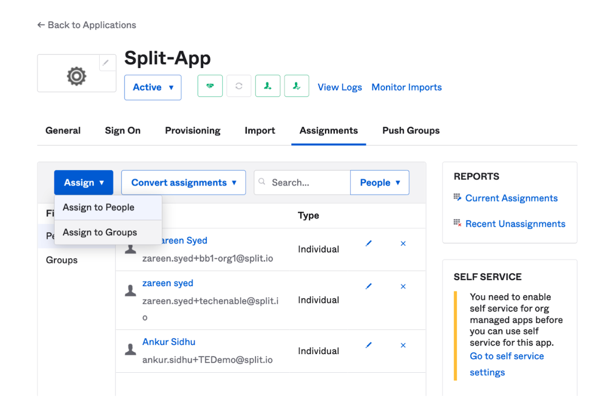 - User management actions such as Deactivate and Activate is disabled in Split. Okta administrators control the user management within Okta.