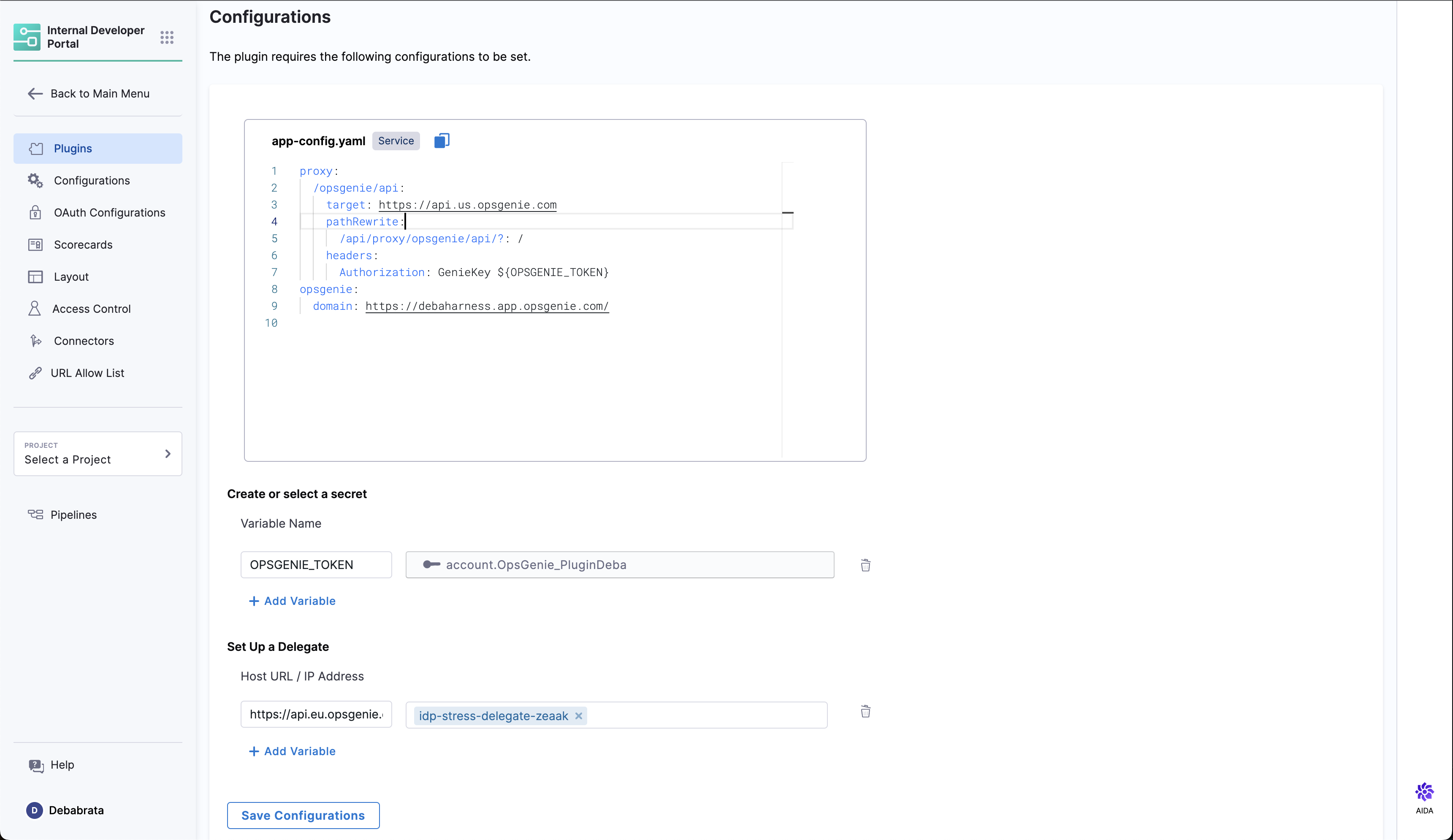 and Edit YAML to configure your Opsgenie instance in the target field and add your domain in the format as shown below.