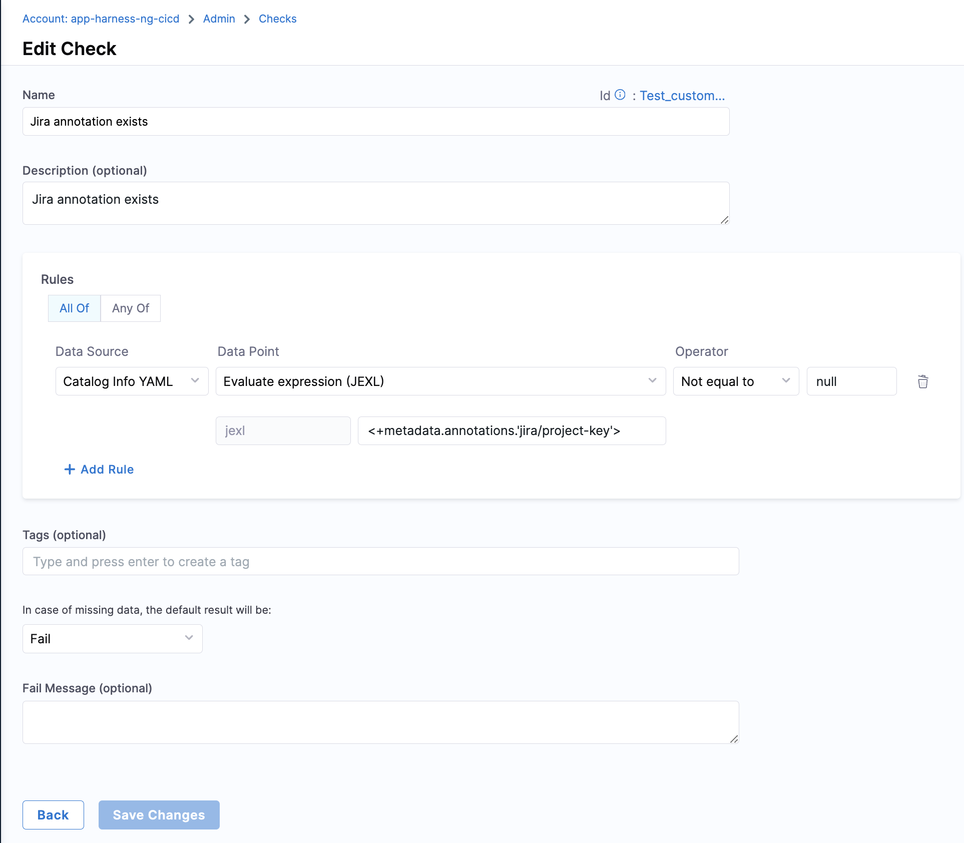 Now add the default result in case of missing data and Save Changes. Your checks will be added.