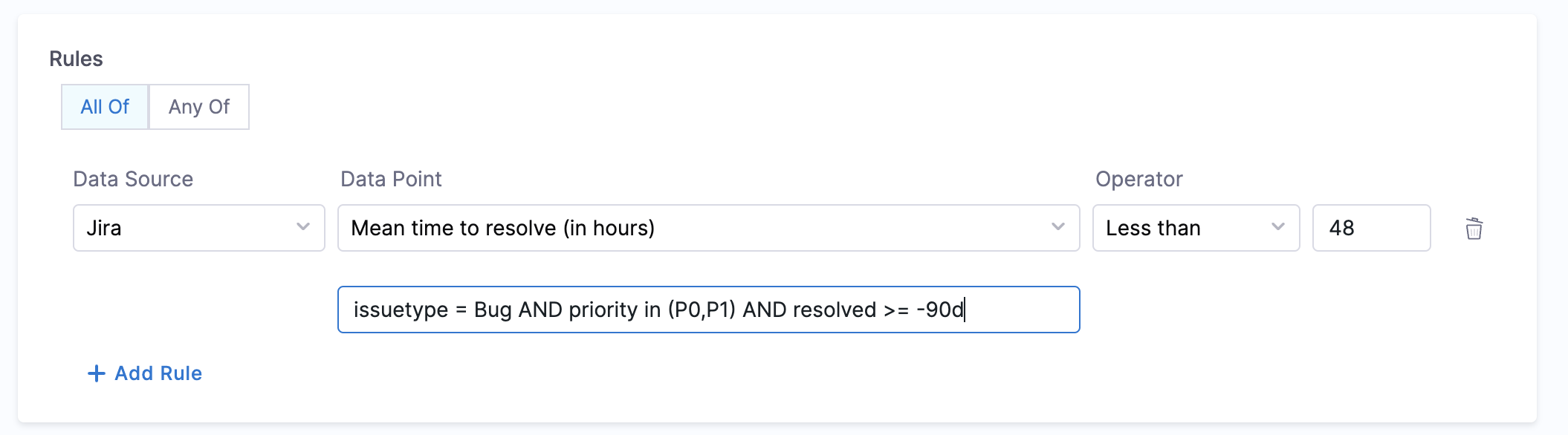 - Is on-call Set - This data point can be used for creating rules that will check if the on-call is set for a given service.