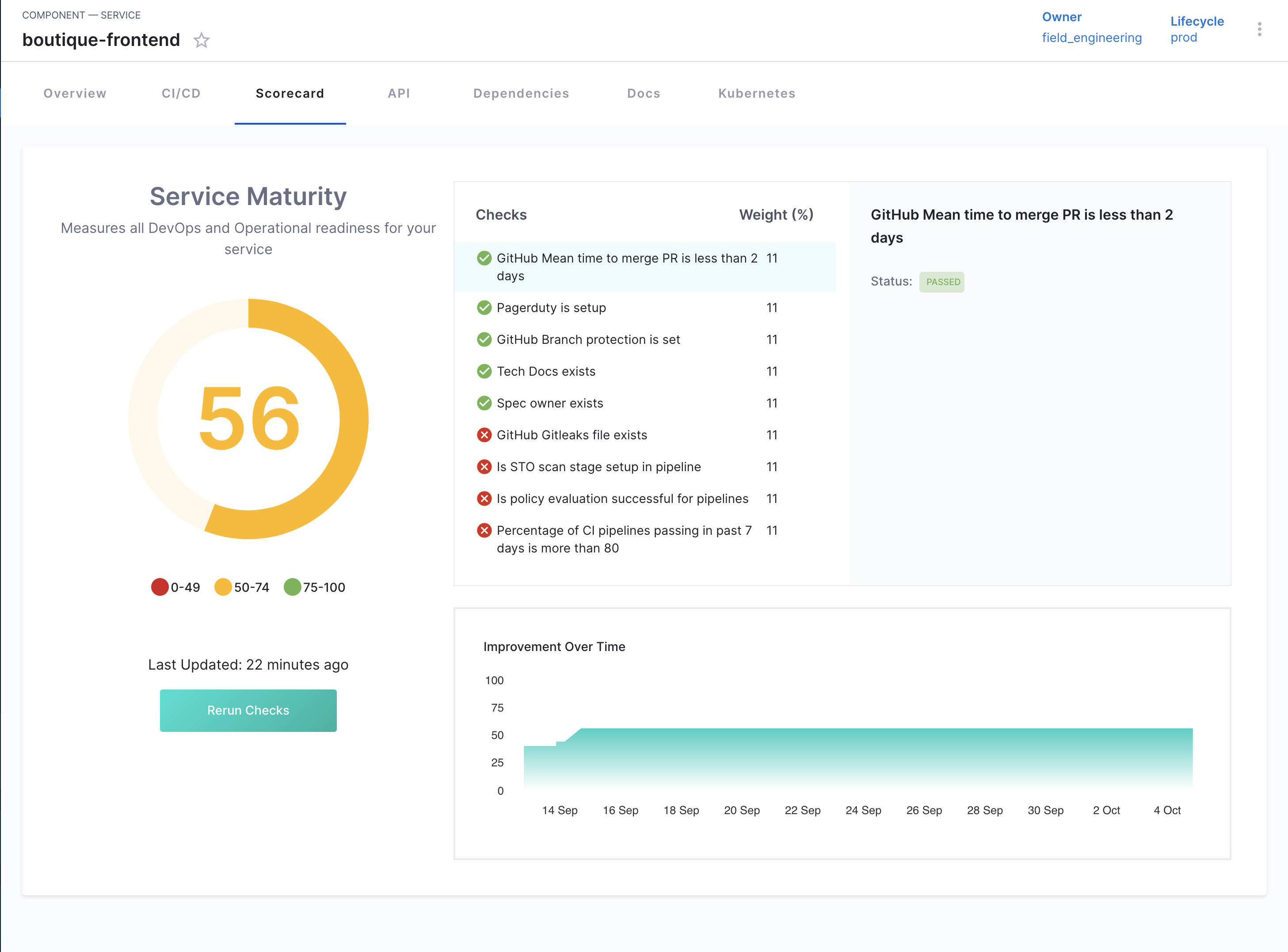 On the Scorecard page, locate the specific Scorecard you want to refresh and click "Rerun Checks".