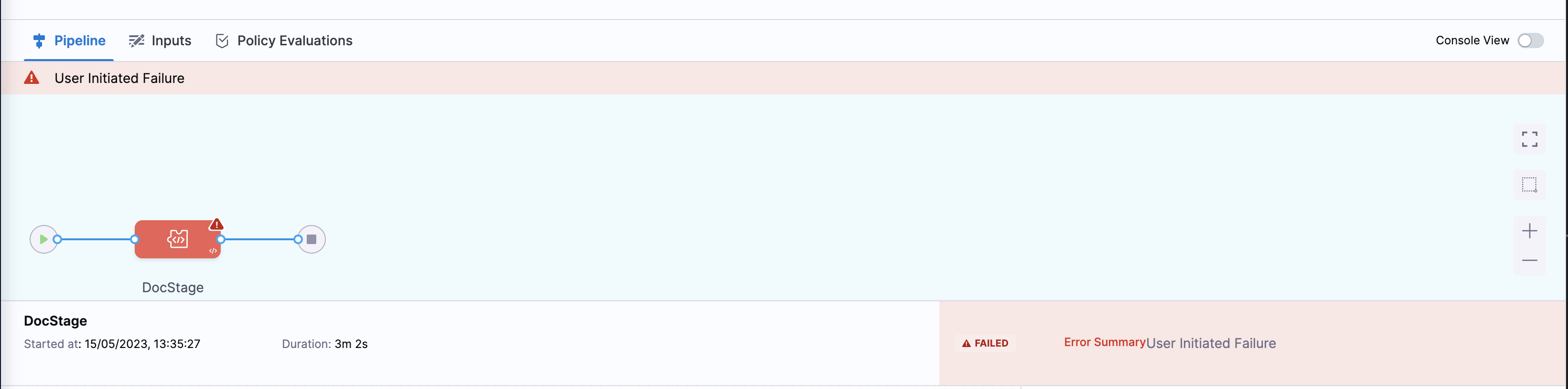 You can mark a specific stage as failed during pipeline execution by selecting the Mark Stage As Failed