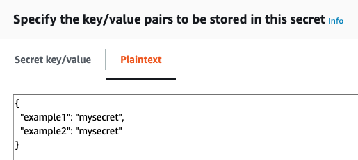 In AWS Secrets Manager, your secrets are specified as key-value pairs, using a JSON collection: