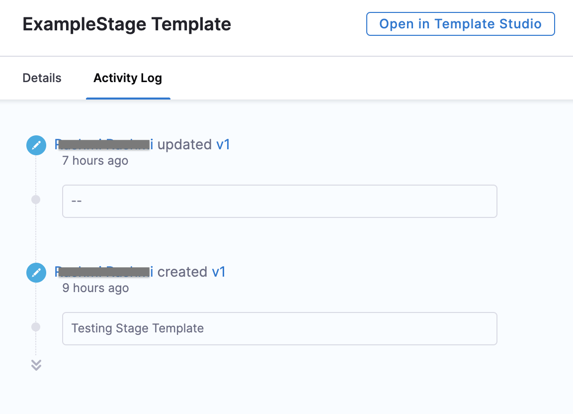• Track all template events using the Activity Log option. It shows you details like who created the template and template version changes.