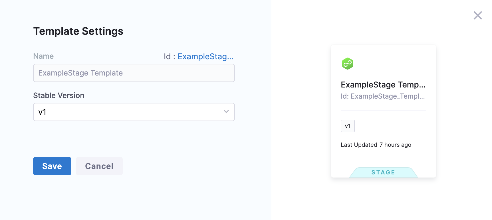 Harness emits an Audit Event whenever the stable version of a template is updated. The Audit Event includes a YAML Diff section, allowing users to easily view the differences between the old and new stable versions of the template.