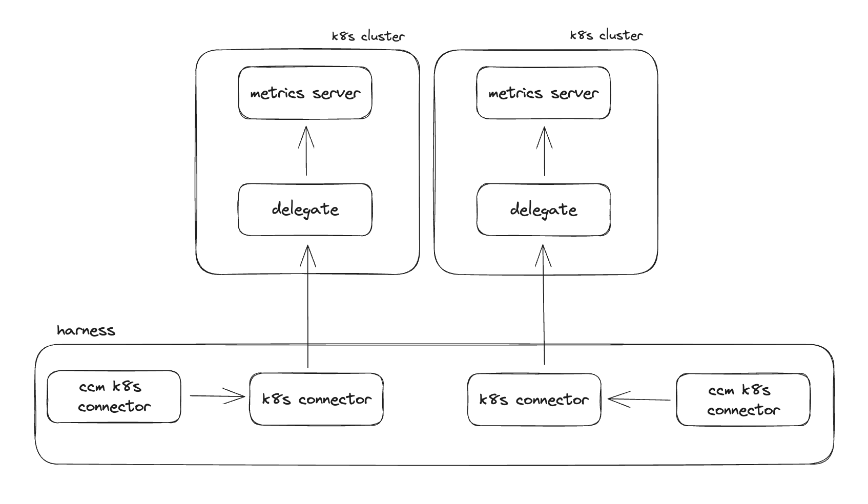 To ingest usage and cost data from a Kubernetes cluster, as well as allow access for auto stopping, we will need to deploy what is referred to as a "delegate" into some or all Kubernetes clusters. This will require the Kubernetes metrics server to be running in every cluster. Finally, for every cluster you want to enable CCM for, we will be creating two different connectors in Harness.
