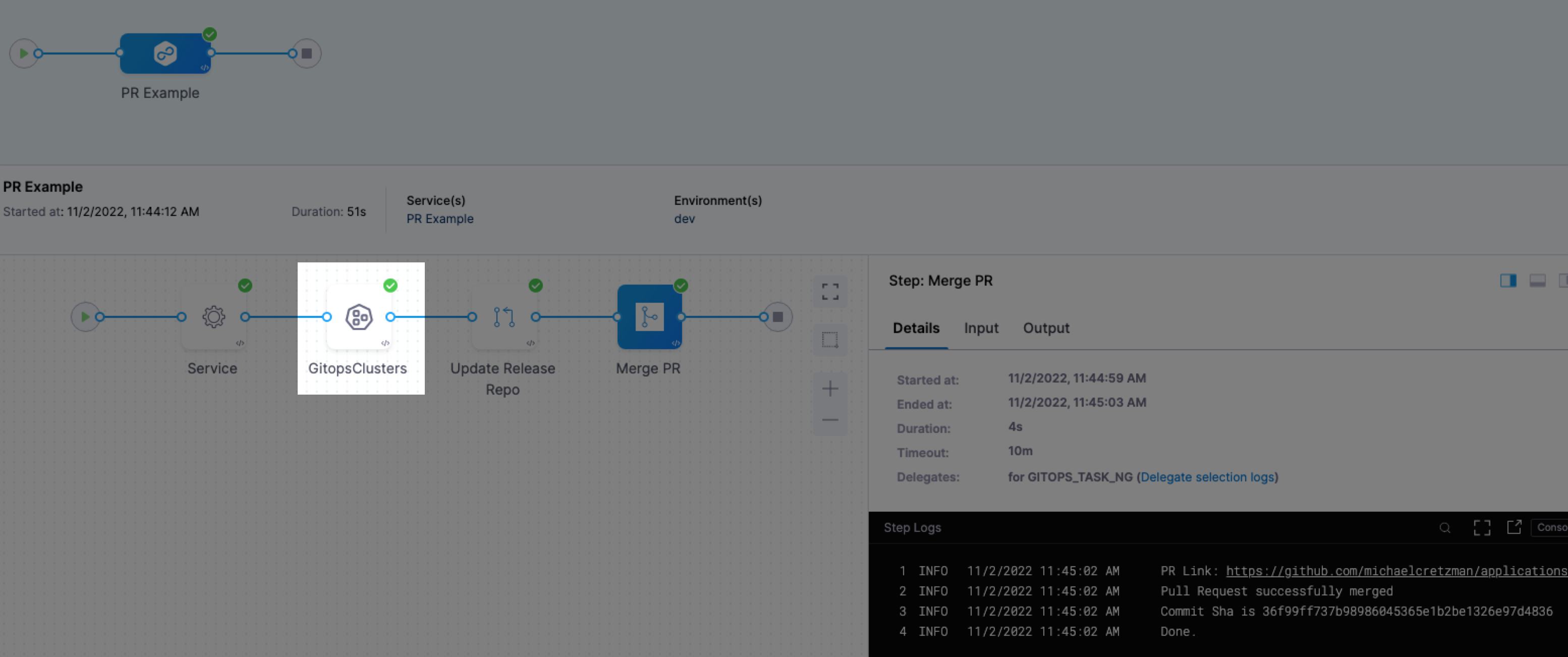 before correcting itself after several minutes. This issue affected all GitOps applications and has been resolved to ensure real-time status updates. (CDS-113641, ZD-91541) - Fixed an issue where environment propagation between stages in GitOps PR pipelines was failing with validation errors. Users were unable to execute multi-stage GitOps pipelines when attempting to propagate environments from one stage to the next, even though the YAML configuration passed validation. This functionality has been restored to support proper environment propagation in GitOps workflows and is available behind the feature flag