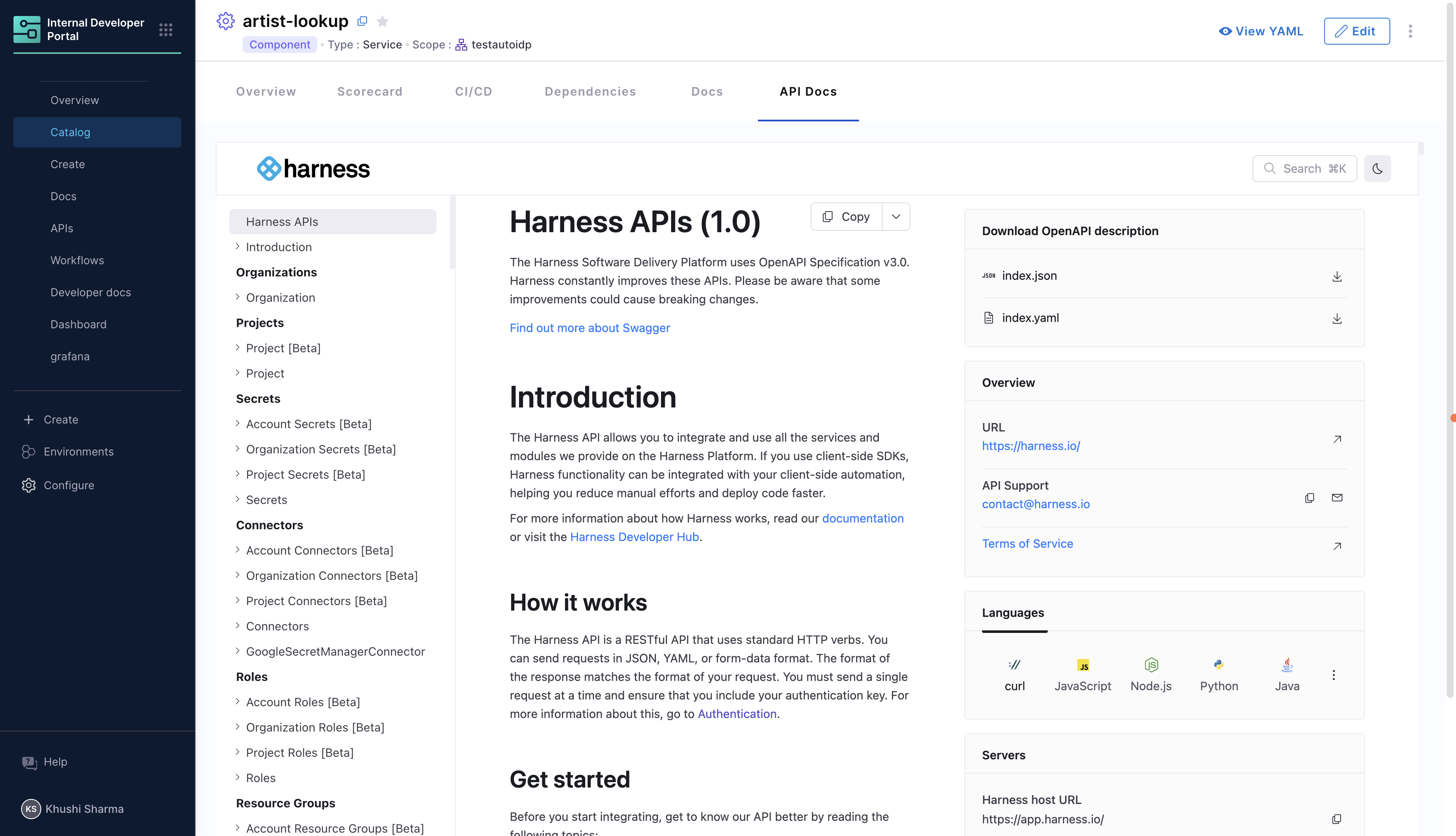 - You can now access IDP catalog APIs by using the Harness X-API-Key. For more information, go to API access. (IDP-768)