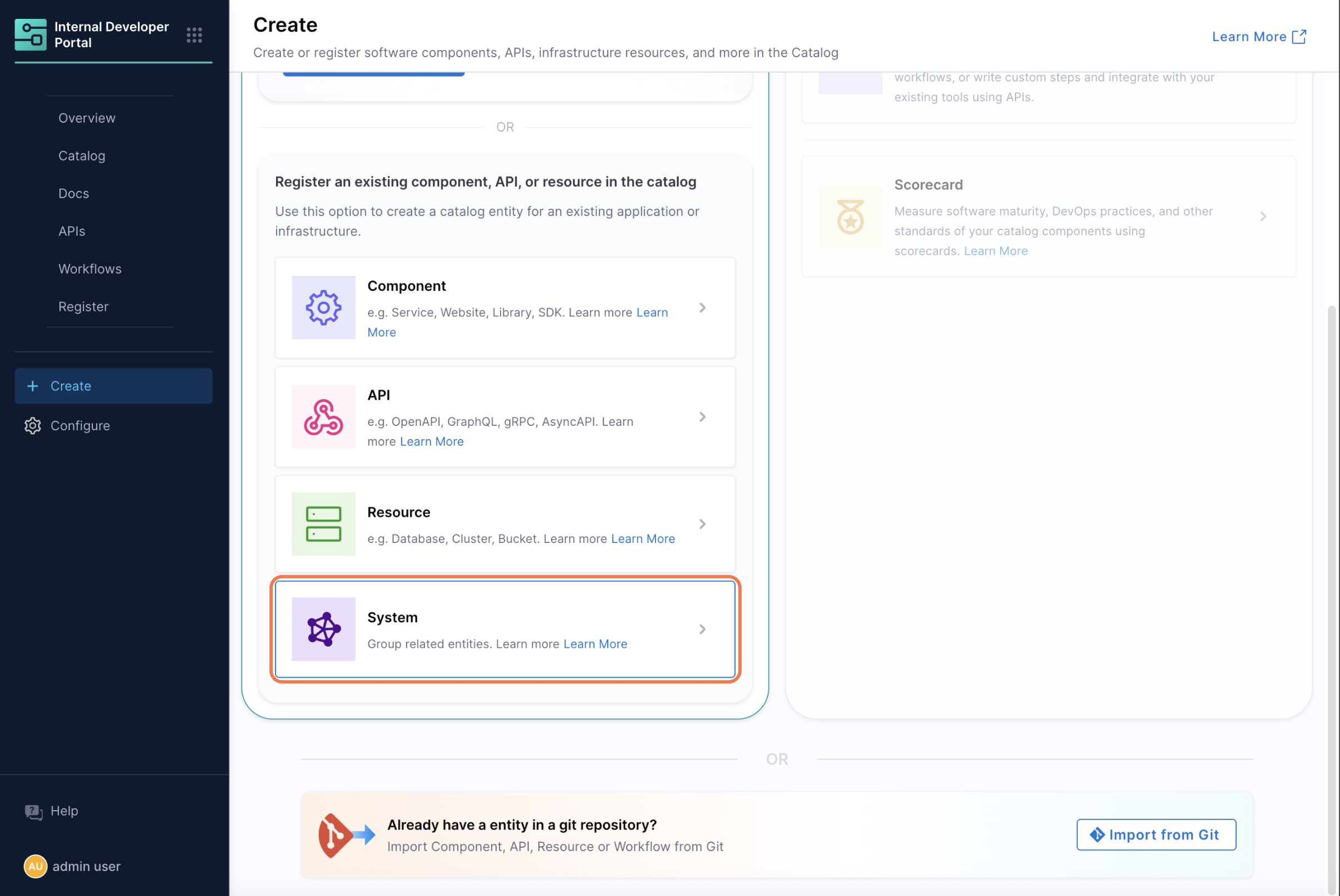 action in a template and register the newly generated software component'scatalog-info.yaml